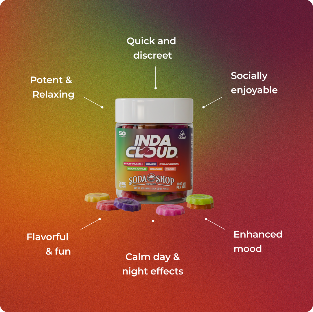 Massive 50‑gummy jar packed with six nostalgic Soda Shop flavors, prime potency, and unmatched value for seasoned users seeking variety and strength.