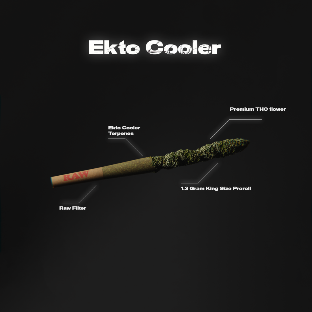 Ekto Kooler Pre-Rolls are designed to engage and uplift your senses. The unique blend of citrus and pine flavors provides a refreshing taste, while the scents of gasoline and skunk add a layer of complexity to the sensory experience. When smoked, the pre-roll interacts with the body's endocannabinoid system, potentially leading to feelings of relaxation, euphoria, and increased creativity. The overall sensory experience is one of upliftment and enjoyment, making the Ekto Kooler Pre-Roll an excellent choice for those seeking a unique and engaging cannabis experience.