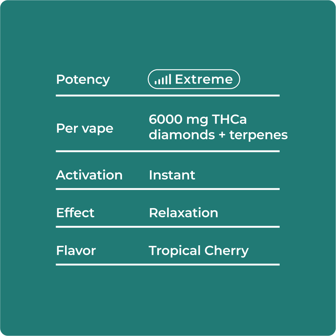 Forbidden Fruit delivers deep relaxation, mood-elevating euphoria, and juicy cherry-tropical notes in one smooth, heavy-hitting 6g disposable.