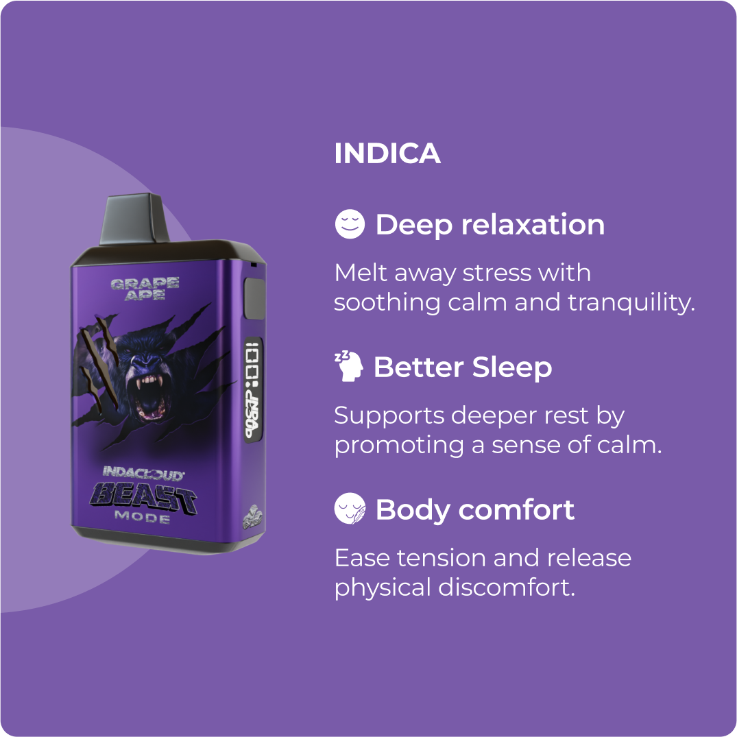 Triple-grape sweetness meets Beast Mode potency, Grape Ape delivers knockout relaxation, dreamy sedation, and smooth fruit flavor in a heavy-duty 6 g rechargeable vape.