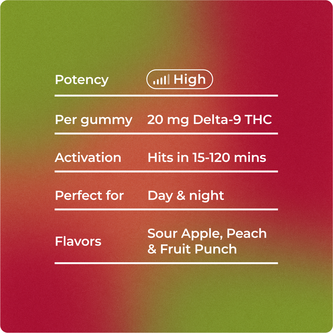 The ingredients of the XL Bundle Delta 9 THC Gummies adhere to strict quality standards. This includes carefully extracting Delta 9 THC to ensure its potency and purity. As for the other ingredients, while specifics can be found on the packaging, you can anticipate a combination of natural and artificial flavorings, sugar, and other typical ingredients in gummy confectionery. We want to be transparent and honest to our consumers so they know exactly what they consume.