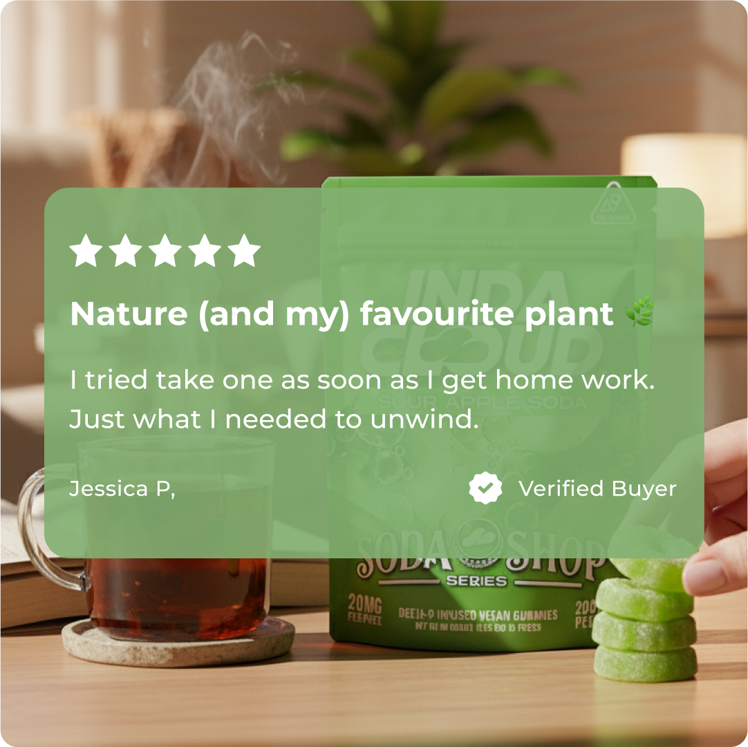 Indacloud gummies, including our Soda Shop, Delta 8, and Sleep Bliss series are all vegan. We use fruit pectin instead of traditional gelatin to form our gummies, giving them an amazing texture and making them free of any animal products.